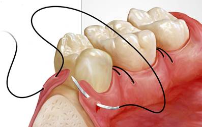 При проведении этой процедуры, врач вертикально надрезает десну и отсоединяет ее. Это позволяет полностью достать все скопившиеся остатки пищи. Обезвредить болезнетворные микроорганизмы удаётся, используя антисептик для промывания десны. После очищения на зубную кость наносится заживляющий регенерирующий раствор.